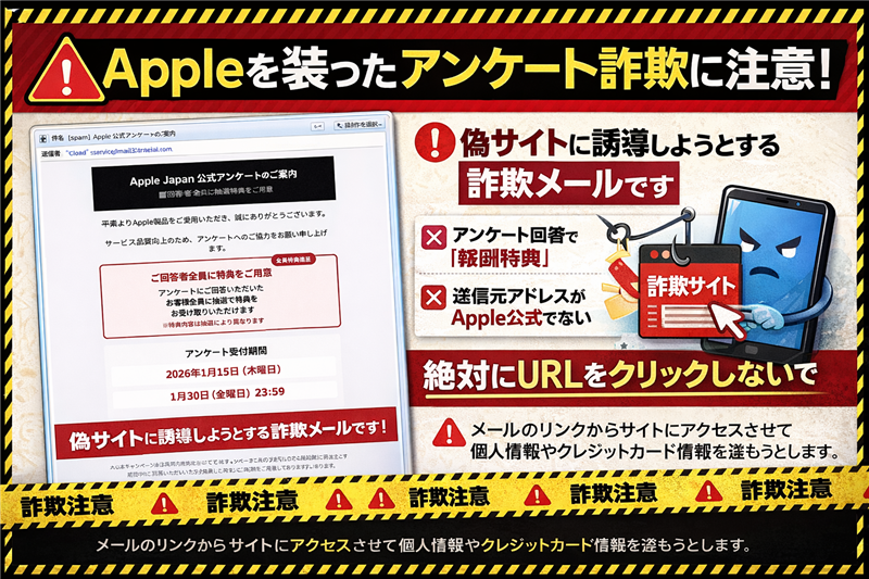 【詐欺】「Apple 公式アンケートのご案内」に注意!巧妙なフィッシングメールを解析
