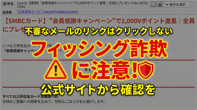 【スパム解析】三井住友カード「会員感謝キャンペーン」2,000Vポイント進呈は偽物!