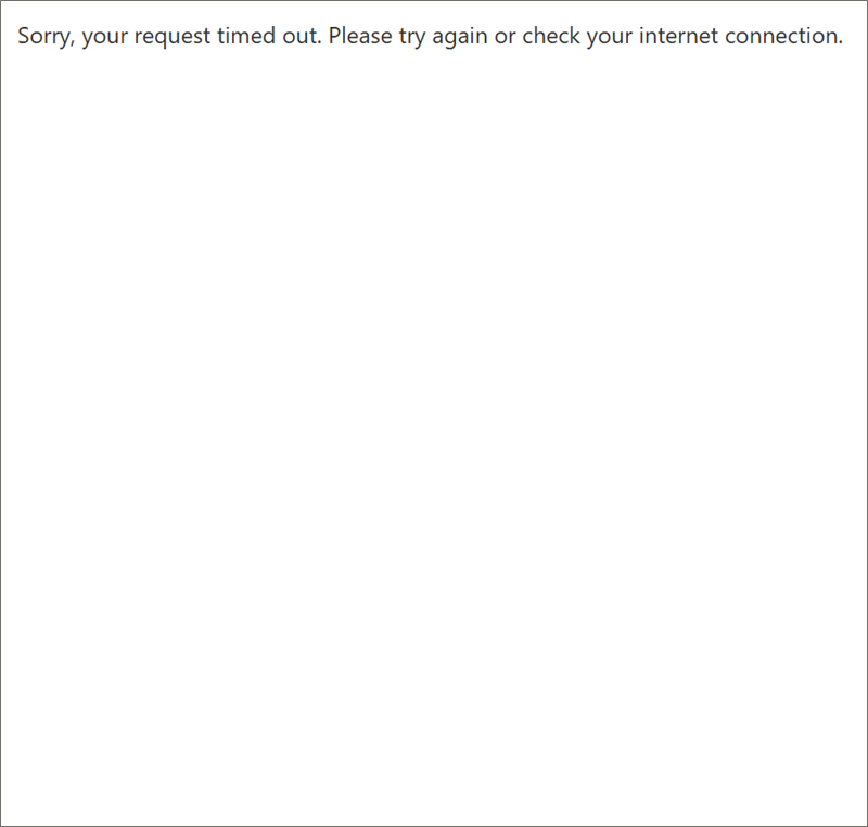 リンクをクリックした際に表示される実際の画面です:Sorry, your request timed out. Please try again or check your internet connection.