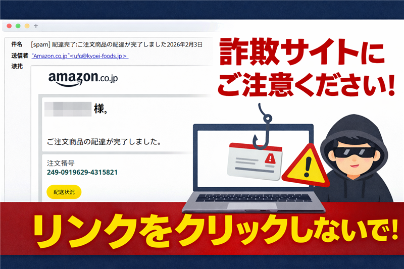 ・正規のAmazonアドレス(amazon.co.jp)に対し、本メールは kyoei-foods.jp という全く異なるドメインから送信されています。これは明らかに「なりすまし」です。