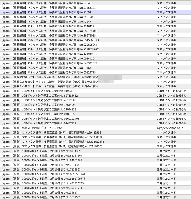 【速報】2026年2月4日早朝のスパム観測:証券・カードを狙う波状攻撃