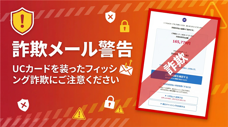 【調査報告】最新の詐欺メール解析レポート メールの解析結果と技術的エビデンスの記録 | 最近のスパム動向と前書き 今回ご紹介するのは「UCカード」を騙るメールですが、その前に最近のスパムの動向について触れておきます。昨今、クレジットカード会社を装い「お支払金額」の確定を通知して偽サイトへ誘導する手口が急増しています。これらは季節や月初のタイミングに合わせて大量送信される傾向があり、非常に巧妙です。