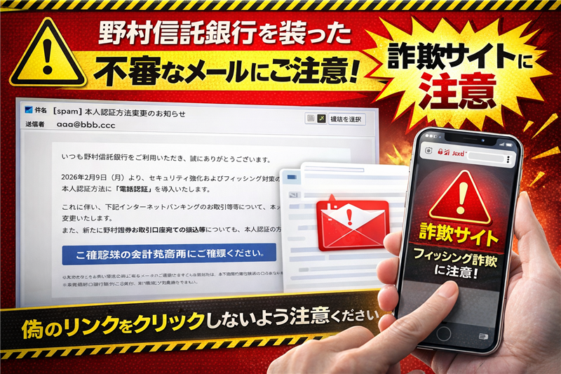 【危険】野村信託銀行の偽メールに注意|「電話認証」導入を装うフィッシングサイトを技術検証