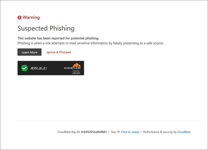 稼働状況: 現在、このURLはCloudflareの「Suspected Phishing(フィッシングの疑い)」警告により、直接のアクセスが制限されています。世界中のセキュリティデータベースがこのドメインを「危険」と認識した証拠です。
