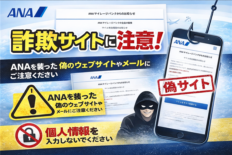 ■ 最近のスパム動向 現在、ANA(全日本空輸)を装い「マイルの有効期限」を口実にして偽のログインサイトへ誘導するフィッシング攻撃が多発しています。2026年に入り、攻撃者はCloudflare等の正規サービスを悪用して自身の身元を隠蔽しつつ、短期間で使い捨てるドメインを量産して摘発を逃れる傾向にあります。