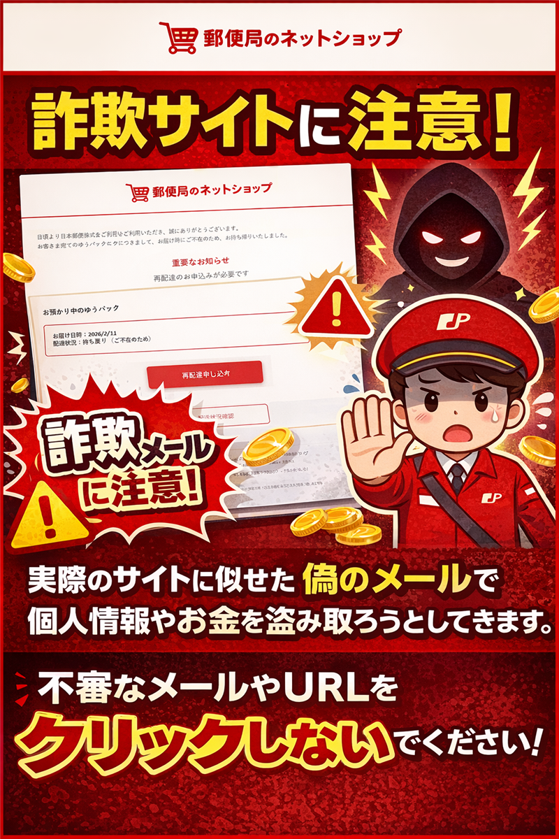 必ず公式の「郵便局アプリ」や正規ブックマークから確認してください。
