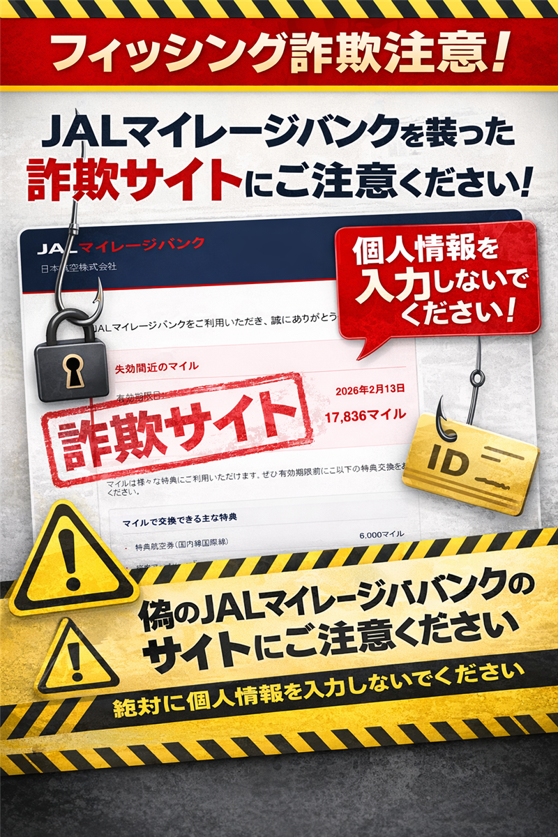 | 【調査報告】最新の詐欺メール解析レポート | 件名: | [spam] 【JAL】マイル有効期限のお知らせ | | ※件名の[spam]タグは、送信元のIPアドレスが信頼できないネットワークから送信されているため、サーバー側で自動付与されたものです。 | | 送信者: | JALマイレージバンク <noreply@jal.co.jp> | | 受信日時: | 2026-02-12 15:03 | | 【メールのデザイン再現】 ※できる限り忠実に再現していますが、本物の詐欺メールとデザインが異なる場合もあります。 JALマイレージバンク 日本航空株式会社 | | 平素よりJALマイレージバンクをご利用いただき、誠にありがとうございます。お客様のアカウントにて保有されているマイルが、まもなく有効期限を迎えます。下記期限までにマイルをご利用いただけない場合、自動的に失効いたしますのでご注意ください。 失効間近のマイル | 有効期限日: | 2026年2月13日 | | 対象マイル数: | 17,836マイル | | マイルは様々な特典にご利用いただけます。ぜひ有効期限前に以下の特典交換をお楽しみください。 マイルで交換できる主な特典 | | ・特典航空券(国内線国際線) 6,000マイル | | ・JAL Pay ポイント 1,000マイル=1,000円分 | ※特典交換にはJALマイレージバンクへのログインが必要です | | 【危険なポイントと注意点】 送信元アドレスの比較: 表示名は「<noreply@jal.co.jp>」と正しく見えますが、これは送信側で容易に偽装可能な「Header-From」と呼ばれる情報です。実際の送信経路を解析すると、全く異なるドメインを経由していることが確認できました。 【公式の注意喚起情報】 JAL公式サイトでも、このようなフィッシングメールに対して強い注意喚起が行われています。 JAL公式:不審なメール・偽サイトにご注意ください