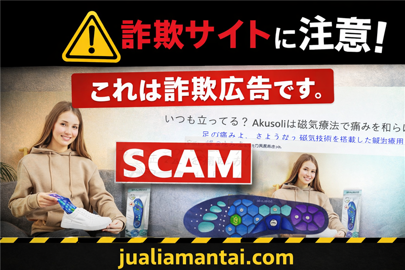 今回のケースは、過去に確認された「海外製健康器具詐欺」の典型的な焼き直し事例です。富士山の画像や日本語のキャッチコピーは全て偽りであり、実体は個人情報の窃取を目的としたサイトです。