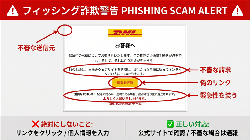 【警告】DHL発送状況:アクションが必要|詐欺メール解析レポート