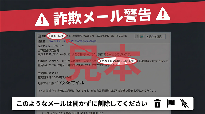 【偽JALメール】JALマイル有効期限のお知らせ(2026年2月24日)詐欺解析レポート