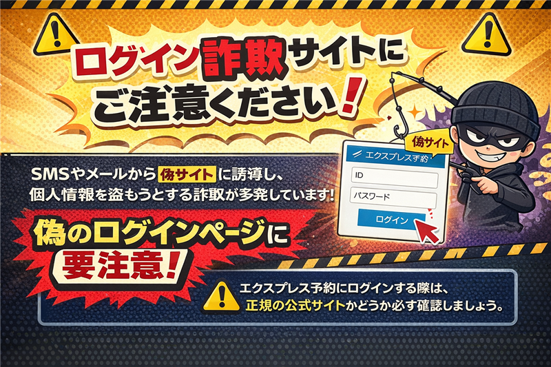 公式注意喚起リンク: 【重要】エクスプレス予約を騙る不審なメールについて | |