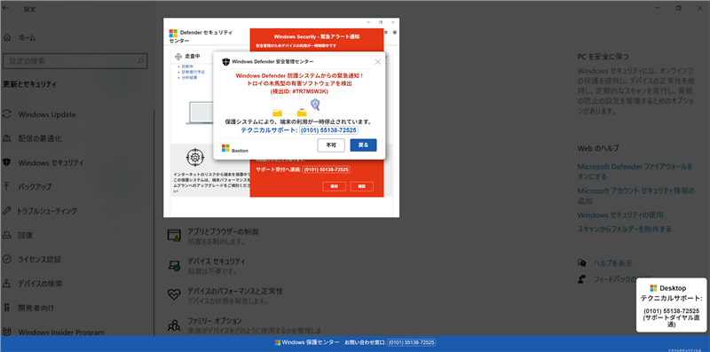 | | ■ リンク先ウェブサイトの危険性評価 | リンク箇所:「本人確認とパスワードの変更をお願いします」 誘導先URL:hXXps://bulavudir.z16.web.core.windows.net/yefhr0vvahbr.html(※一部を伏せ字にして無効化) | リンク先IPアドレス | 13.107.246.33 | | ドメイン | bulavudir.z16.web.core.windows.net | | ホスティング事業者 | Microsoft Corporation (Azure Web Hosting) | | サーバー設置国 | アメリカ合衆国 (United States) | リンク先の詳細回線分析: https://ip-sc.net/ja/r/13.107.246.33 | ■ 詐欺サイトの実態(サポート詐欺) このリンクをクリックすると、ウイルスバスターやGoogle Chromeによって「危険なサイト」として警告が表示されますが、それを回避して進むと、以下のような「偽のWindows Defender警告」が表示されます。  稼働状況: 現在稼働中(2026-02-26時点)。ドメイン登録日は数日以内と非常に新しく、典型的な「使い捨てドメイン」による攻撃です。 | ■ 推奨される対応とまとめ このメールは、受信者の焦りを煽り、サポート詐欺の電話番号へと誘導する悪質なものです。 1. メールの破棄: 宛名が記載されておらず、送信元が自身のドメインを偽装している時点で100%詐欺です。即座に削除してください。 2. パスワード変更の不要: メール内のリンクからは絶対にログインしないでください。 3. 公式情報の確認: サービス提供元の公式サイトにて、同様の注意喚起が出ていないか必ず確認してください。 過去の類似事例と比較しても、今回は技術的な隠蔽工作(ベトナム経由の送信)が目立ちます。十分に注意してください。 | |