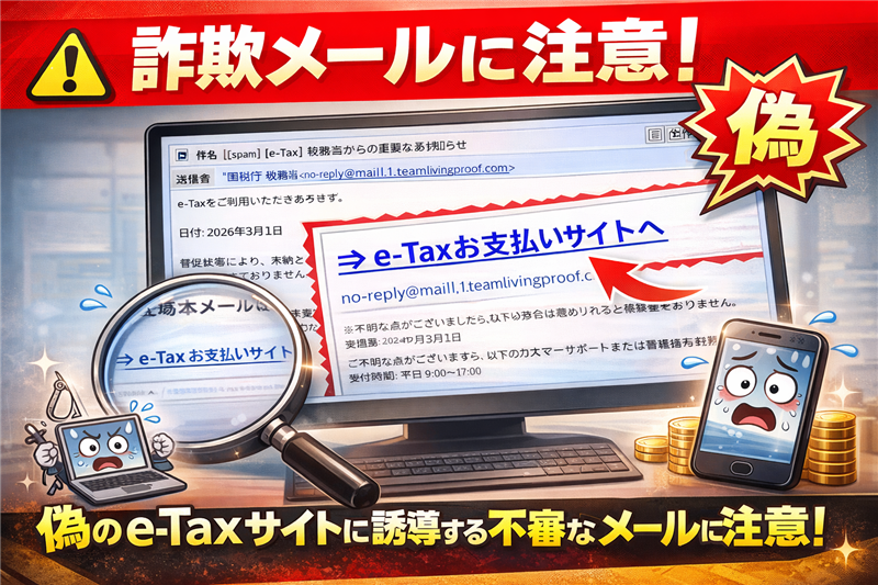 今回ご紹介するのは「e-Tax(国税電子申告・納税システム)」を騙るメールですが、その前に最近のスパムの動向を解説します。現在、確定申告(3月)の時期に合わせ、税務当局を装い「未納」「差し押さえ」といった言葉で受信者の恐怖心を煽るフィッシング詐欺が爆発的に増加しています。これらは法的手段を背景に、冷静な判断を失わせることを目的とした心理的攻撃です。