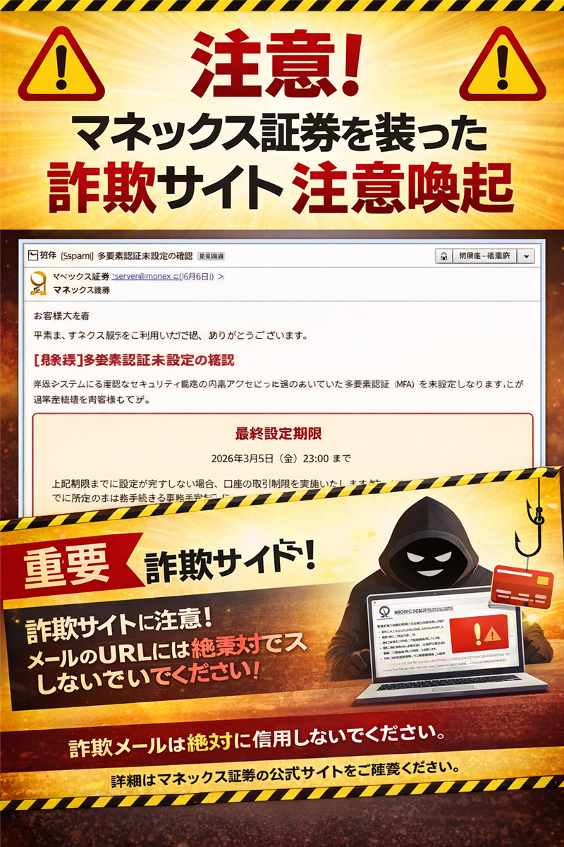 [解析] マネックス証券を騙る「多要素認証未設定の最終通知」詐欺メールを徹底調査