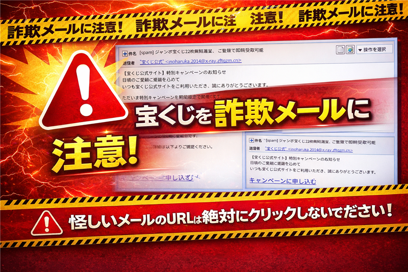 * 送信元アドレスの不一致: 実際の公式サイト「takarakuji-official.jp」とは全く異なる中国ドメインを使用しています。