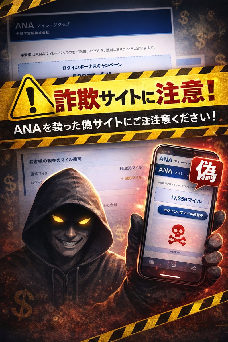 今回ご紹介するのは「ANA(全日本空輸)」を騙るメールですが、その前に最近のスパム動向を解説します。2026年に入り、航空系や鉄道系の「ポイント失効」を材料にした詐欺が激増しています。特に年度末や大型連休前を狙い、「ログインするだけでボーナスマイル付与」という甘い言葉で、普段セキュリティ意識が高い層の警戒を解く手法が主流となっています。