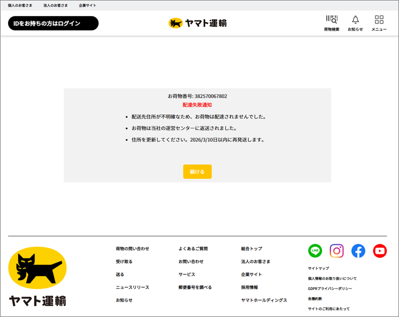 ■ヤマト運輸公式サイトによる公式注意喚起