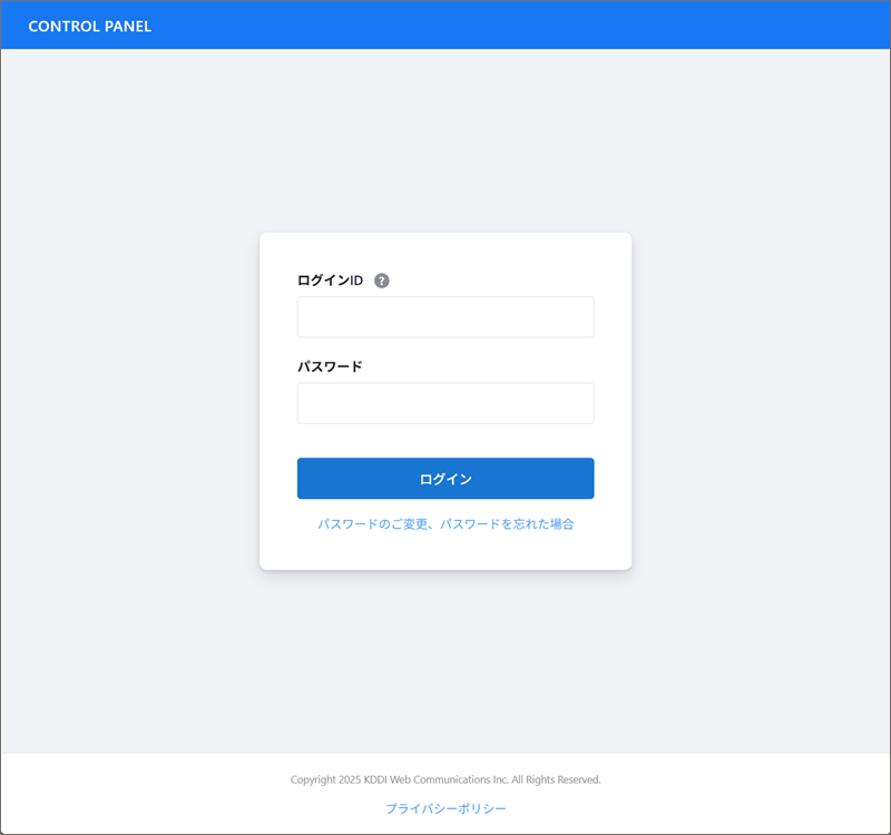 サイトの状態 現在稼働中。 「CONTROL PANEL」という名称で、KDDI Web Communicationsのコピーライトを無断使用した偽ログイン画面を表示。