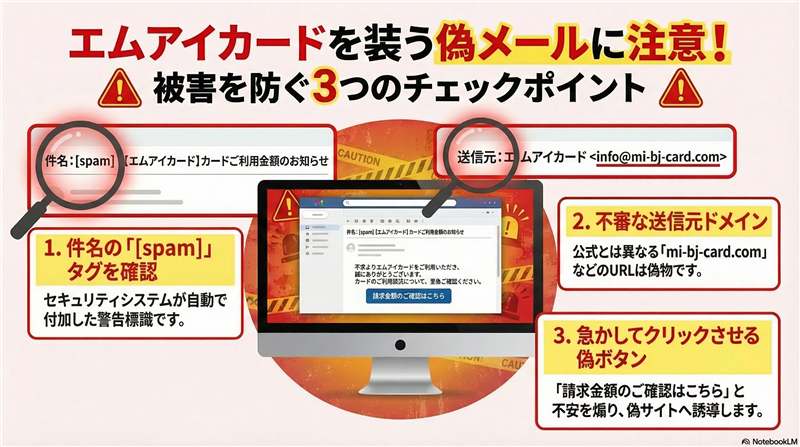 ■ 最近のスパム動向と解析背景 今回ご紹介するのは「エムアイカード」を騙るメールですが、その前に最近のスパムの動向について解説します。 2026年現在、攻撃者は「実在する企業のキャンペーン期間」や「請求確定日」を極めて正確に狙い撃ちする傾向にあります。 特に今回のケースでは、受信日(3月14日)に対し、2026年3月分の請求を案内するという「時間的整合性」を持たせることで、ユーザーの焦りを誘発する高度な心理戦が仕掛けられています。