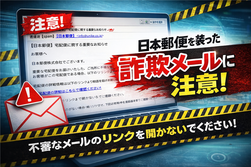 【調査報告】最新の詐欺メール解析レポート 調査対象:日本郵便を騙る不審な配送通知メール | ■ 最近のスパム動向 今回ご紹介するのは「日本郵便」を騙るメールですが、その前に最近のスパムの動向を解説します。2026年現在、物流インフラを装った詐欺は「再配達」から「住所不備による返送警告」へと手口がシフトしています。特に引っ越しシーズンや大型連休前後など、荷物の出入りが激しい時期を狙って、焦燥感を煽る文面で偽サイトへ誘導する手口が目立ちます。 | ■ メールの基本属性 | 件名 | [spam] 【日本郵便】宅配便に関する重要なお知らせ | | 件名の見出し | 「[spam]」という文字列は、サーバー側の防衛システムがこのメールを「迷惑メール(詐欺)」と自動判定した際に付与される警告タグです。 | | 送信者 | “【日本郵便】” <info@unike.co.jp> | | 受信日時 | 2026-03-15 17:02 | | 送信者分析 | 表示名は日本郵便ですが、メールアドレスのドメインが「unike.co.jp」となっており、公式サイト(post.japanpost.jp)と全く一致しません。この時点で偽物と断定できます。 | | ■ メールの本文(忠実再現) ※できる限り忠実に再現していますが、本物の詐欺メールとデザインが異なる場合もあります。 【日本郵便】宅配便に関する重要なお知らせ お客様へ 日本郵便株式会社でございます。 重要な宅配便をお届けいたしましたが、ご住所に不備があるため、受取人様とご連絡が取れない状況です。 お客様がこの宅配便の受取人である場合、以下のリンクよりご確認をお願いいたします。 宅配便の詳細情報は以下のリンクよりご確認いただけます。確認後、再度の配達手続きをいたします。 宅配便の詳細をご確認ください お客様にはご不便、ご心配をおかけして申し訳ございません。 何卒ご理解いただきますようお願い申し上げます。 ※24時間以内にご確認いただけない場合、宅配便は返送となる可能性がございますので、ご注意ください もしこのメールに心当たりがない場合は、リンクをクリックせず、下記の電話番号までご連絡ください。 日本郵便株式会社 〒100-8756 東京都千代田区大手町二丁目3番1号 営業時間:平日9:00-17:00 | | ■ 犯人の目的と専門的見解 【犯人の目的】 最大の目的は、偽の再配達受付画面を表示させ、氏名・住所・電話番号などの個人情報、およびクレジットカード番号を盗み取ることです。盗まれた情報は闇サイトで売買されるか、不正決済に悪用されます。 【専門的解説】 文面は丁寧を装っていますが、本物の日本郵便であれば「お客様へ」といった抽象的な宛名ではなく、登録された氏名を記載します。また、署名欄に記載されている郵便番号「100-8756」は日本郵政本社の正しいものですが、ここには問い合わせ先の電話番号が記載されていません。これは受信者に「電話で確認する」という選択肢を与えず、強制的にリンクをクリックさせるための心理的トラップです。 公式サイトの注意喚起: 日本郵便を装った不審メール等への注意喚起 | ■ 送信元回線関連情報(Received解析) 以下のデータはメールヘッダーから抽出した「送信元の真実の足跡」です。 | 送信元ドメイン | unike.co.jp(偽装アドレス) | | 実際の送信IP | 160.251.255.90(信頼できる送信者情報) | | 送信ホスト名 | v160-251-255-90.c8kt.static.cnode.jp | | ホスティング | GMO Internet Group, Inc. (ConoHa) | | 設置国 | 日本 (Japan) | 本レポートの根拠データ(解析エビデンス): https://ip-sc.net/ja/r/160.251.255.90 | ■ リンク先サイト(詐欺サイト)の解析 | リンク先URL | hxxps://zh-app-heibaitv.com/X0***U(※伏字処理済) | | IPアドレス | 172.67.147.168 | | ホスト名 | cloudflare.com | | 設置国 | アメリカ合衆国 (United States) | | ドメイン登録日 | 2026年3月上旬(直近取得) | | 判定理由 | ドメイン登録が極めて新しく、典型的な「使い捨て詐欺ドメイン」の特徴を備えています。現在サイトは稼働を停止(404エラー)していますが、これは追跡を逃れるための閉鎖または通報による凍結と推測されます。 | サイト回線関連情報の解析(エビデンス): https://ip-sc.net/ja/r/172.67.147.168 | ■ まとめ・推奨される対応 本件は、過去に流行した「不在通知」詐欺の変種であり、手口自体は古典的です。しかし、送信元に国内のレンタルサーバーを悪用するなど、フィルターを潜り抜けようとする意図が見て取れます。 【対処法】 ・メール内のリンクは絶対にクリックしない。 ・万が一クリックしても、クレジットカード情報は絶対に入力しない。 ・公式情報の確認は、必ず日本郵便公式サイトから直接行ってください。 | |