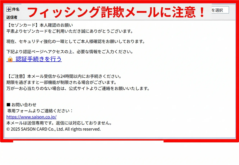 【ご確認のお願い】セゾンカードを騙る詐欺メールが1日8通!実態解析