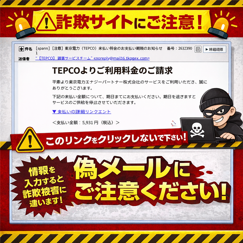 【解析】TEPCO未払い請求詐欺メール「支払いの詳細リンクエント」に注意