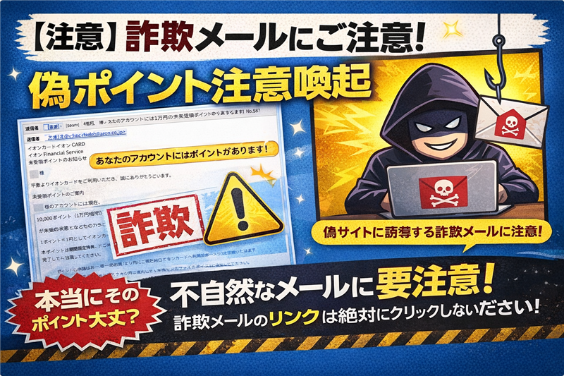 ■ 最近のスパム動向 今回ご紹介するのは「イオン銀行」を騙るメールですが、その前に最近のスパム動向について解説します。 2026年現在、生活コストの上昇に伴い、各社の「ポイント」は現金同等の価値として認識されています。これに目をつけた犯罪グループは、「未受領ポイントの失効」 という名目でユーザーを焦らせ、偽のログインサイトへ誘導する手口を多発させています。
