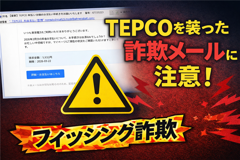 ■ 最近のスパム動向 今回ご紹介するのは「東京電力(TEPCO)」を騙るメールですが、その前に最近のスパムの動向について解説します。現在、電力自由化に伴う契約の見直しや、年度末の精算時期を狙ったインフラ系詐欺が激増しています。特に「未払いによる供給停止」を予告する内容は、生活の根幹を脅かす不安を煽るため、フィッシング詐欺の定番となっています。本件も2026年3月の最新事例として確認されています。
