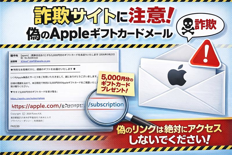 【詐欺判定】「5,000円分のギフトカードをお贈りいたします」メールの偽装サイトと回線情報を公開