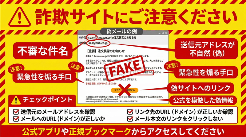 今回ご紹介するのは「Amazon」を騙るメールですが、その前に最近のスパムの動向を。2026年に入り、本物のログイン画面を丸ごとコピーした「フィッシングキット」の精度が極めて高まっています。以前は日本語の違和感で見抜けたものが、現在は正規のクラウドサービス(Google Cloud等)を悪用して配信されるため、メールフィルタを突破しやすくなっています。