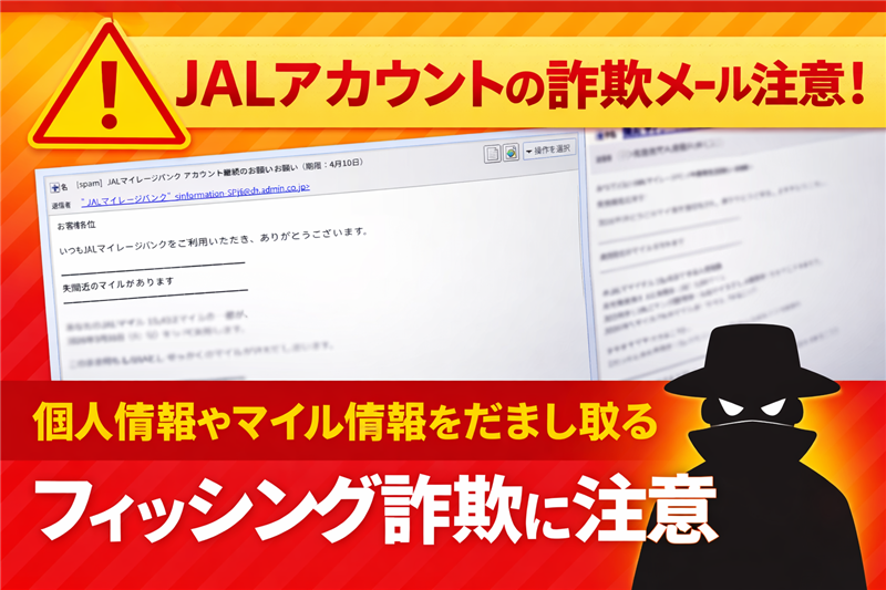 JAL公式からも類似のフィッシングメールに対する注意喚起が出ています。不審なメールは即削除してください。