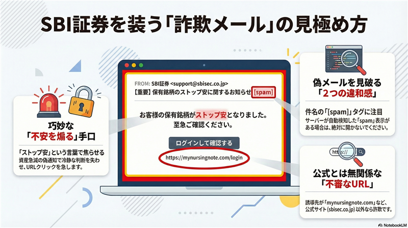 SBI証券偽メール「ストップ安」に注意!誘導先ドメインと送信元を調査