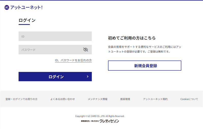 本物の「アットユーネット!」のロゴを無断使用していますが、URLドメインが「mail-longzhulive[.]com」であり、公式サイトとは一切関係がありません。コピーライト表記に「クレディセゾン」と記載して信憑性を高めようとする点もフィッシングの特徴です。
