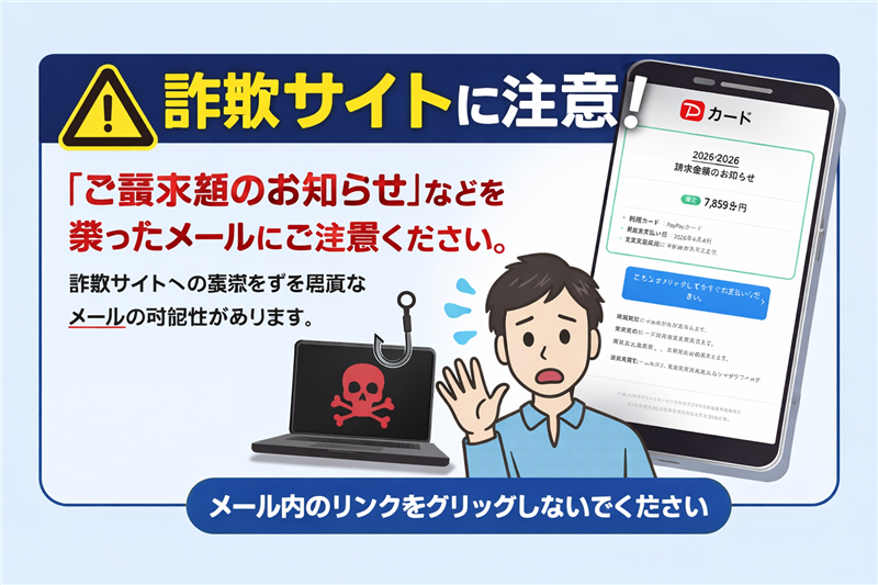 - 請求額を確認したい場合は、必ず「PayPayアプリ」を直接開くか、ブックマークした公式サイトからログインする。