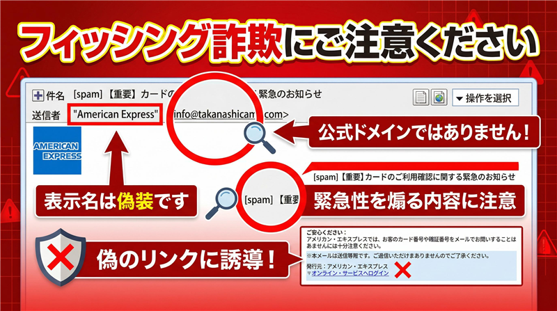 ⇒ アメリカン・エキスプレス公式:不審なメールへのご注意