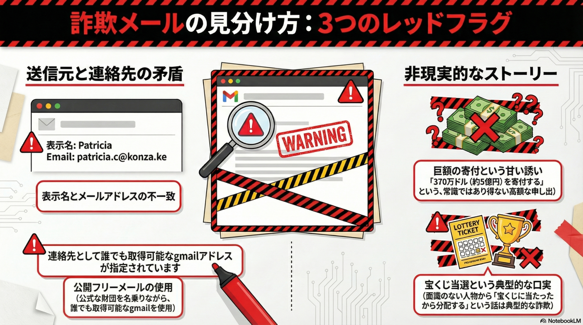 メール本文の忠実な再現 できる限り忠実に再現していますが、本物の詐欺メールとデザインが異なる場合もあります。