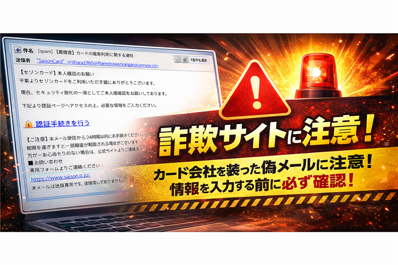 今回ご紹介するのは「セゾンカード」を騙るメールですが、その前に最近のスパムの動向について解説します。2026年4月に入り、新生活を狙ったカード不正利用の通知が多発しています。特に本事例のような「異常利用の検知」を口実にするものは、焦りからリンクを踏ませる典型的な手法です。