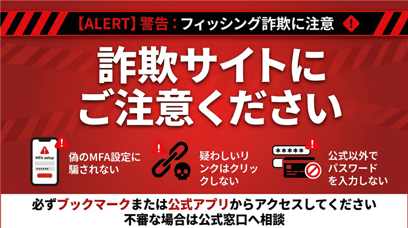 まとめ・対処方法このメールは、本物のSBI証券のデザインやロゴ、正しい電話番号を引用しつつも、最終的には全く別のドメインへと誘導する典型的なフィッシング詐欺です。過去の事例と比較しても、パスキー認証のアイコンを並べるなど「最新のログイン方式」を装う点が非常に狡猾です。万が一パスワードを入力してしまった場合は、即座に公式サイトの正規窓口へ連絡し、パスワード変更と取引停止措置を行ってください。