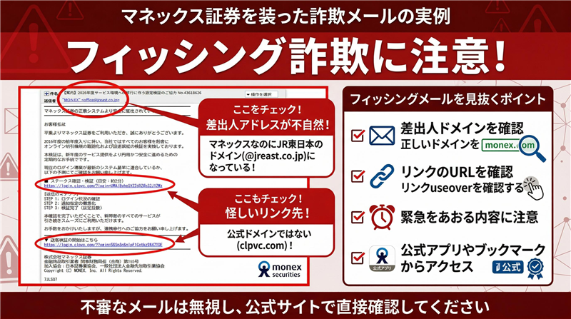 【詐欺注意】マネックス証券「2026年度サービス環境への移行」メールの正体
