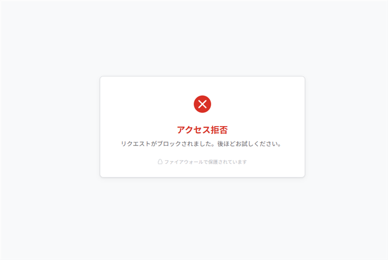 | ■ リンク先サイトの状況 現在、リンク先へアクセスすると以下の「アクセス拒否」画面が表示されます。これは、ウイルスバスター等のセキュリティソフトや、サイト側が調査を逃れるためにリクエストをブロックしている状態です。