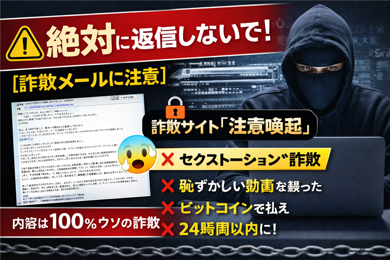 最大の目的は仮想通貨(ビットコイン)の奪取です。受信者のPCを乗っ取った、あるいは恥ずべき動画を撮影したと嘘をつき、パニックに陥った受信者から「解決金」として送金をさせる典型的な「セクストーション(性的脅迫)」です。