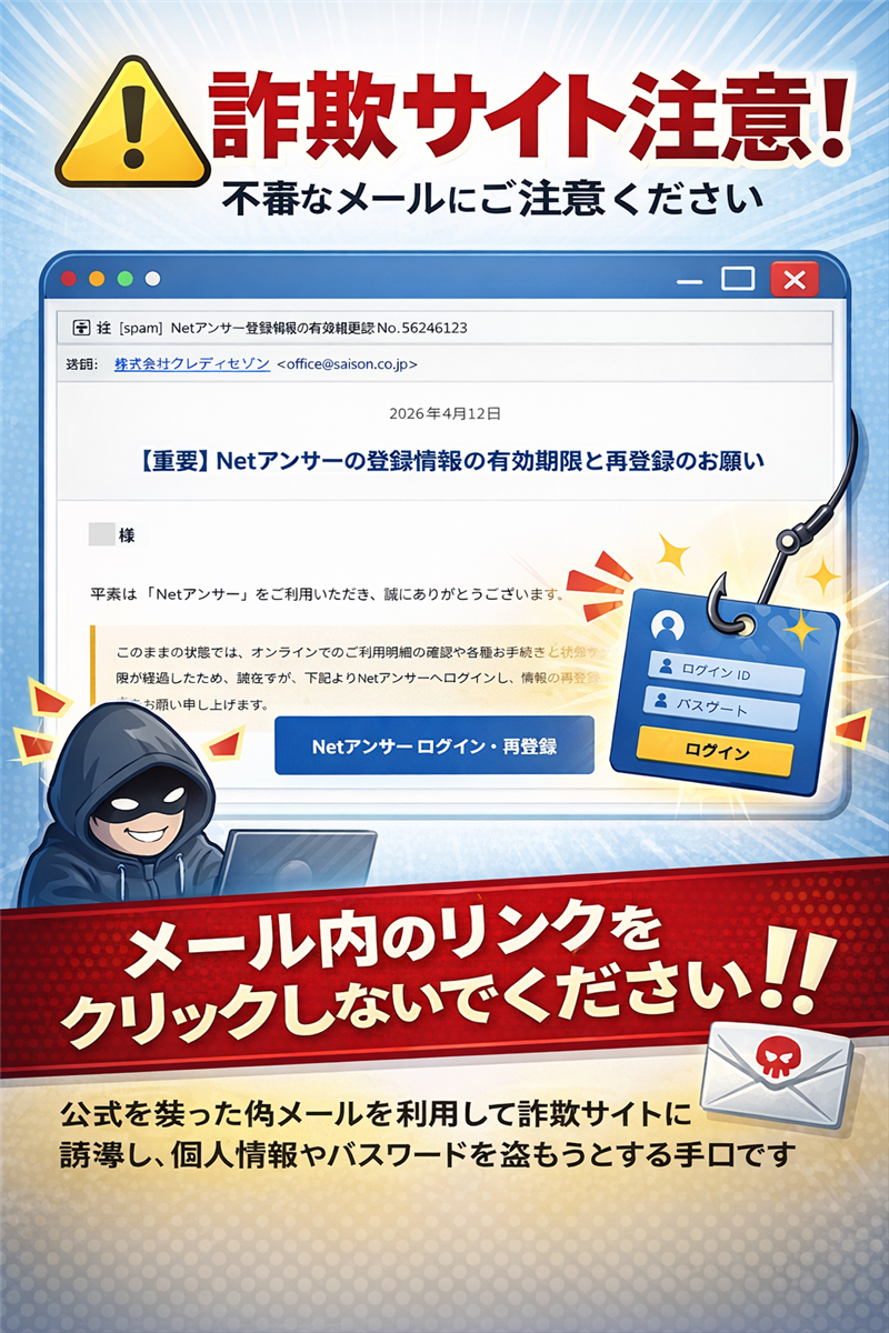 クレディセゾン公式サイトでは、こうした不審なメールに対する警告を継続的に行っています。必ず以下の正規URLから情報を確認してください。