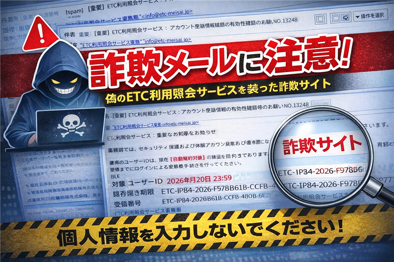 【閲覧注意】実録:ETC利用照会サービス「アカウント登録情報の有効性確認のお願い」は個人情報を奪う犯行予告だった