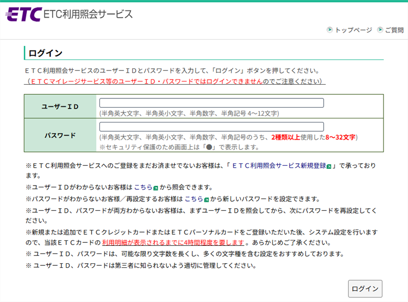 【目的】 本メールの目的は、ETC利用者のユーザーID、パスワード、およびクレジットカード情報を盗み出す「フィッシング」です。偽のログイン画面(画像参照)へ誘導し、情報を入力させることで不正利用を企てています。