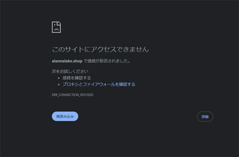 現在、このサイトは「ERR_CONNECTION_REFUSED」となっており、主要なブラウザやセキュリティソフトによってブロックされています。