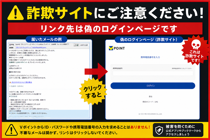 【実録公開】[spam] 【キャンペーン】Vポイント1,800ptプレゼント(先着順・なくなり次第終了)を徹底解剖!偽キャンペーンの正体と罠(閲覧注意) | 今回ご紹介するのは「Vポイント」を騙るフィッシングメールですが、その前に最近のスパムの動向を確認しておきましょう。 ここ1か月間の傾向として、三井住友カードやVポイントの統合・移行期を狙った「ポイント失効」や「限定還元」を謳うフィッシング詐欺が爆発的に増えています。特に「先着順」や「期間限定」といった言葉でユーザーを焦らせ、冷静な判断力を奪い、偽のログインページへ誘導する手口が共通しています。これらは特定の地域に限定されず、海外の拠点を踏み台にして無差別に送信されています。 ■ 【調査報告】最新の詐欺メール解析レポート 【メールの解析結果】 件名: [spam] 【キャンペーン】Vポイント1,800ptプレゼント(先着順・なくなり次第終了) 件名の見出し: 件名の冒頭に「[spam]」と付与されているのは、プロバイダの検閲により「詐欺・迷惑メール」として既にマークされている決定的な証拠です。 送信者名: “Vポイントキャンペーン” <info@ssxpmrr.com> 受信日時: 2026-04-26 11:00 | ◎ 送信者に関する情報 送信者名の「Vポイントキャンペーン」に対し、ドメインが「ssxpmrr.com」という公式サイトとは全く無縁のランダムな文字列になっています。 ご覧の通り、このメールは公式サイトを装った真っ赤な偽物です。被害を未然に防ぐため、この解析結果を家族のLINEグループに転送して注意喚起してください。 ■ メール本文の精密再現 いつもVポイントをご利用いただき、誠にありがとうございます。 このたび、日頃のご愛顧に感謝を込めまして、 期間限定キャンペーンを実施することといたしました。 ▼ キャンペーン内容 対象の活動ページにログインいただいたお客様の中から、 先着順で 1,800 Vポイント をプレゼントいたします。 1,800ポイント 通常よりお得です ■ 受け取り方法 以下のリンクよりログインしてください。 ログイン完了後、自動的にポイントが付与されます。 🔐 今すぐログインして受け取る(リンク先:https://courbe●.cn/lo●in) ※ 先着順・お早めに ※ログイン後、自動で付与されます ※ご応募にはVポイントアカウントが必要です ▼ 注意事項 ・数量に限りがございます(なくなり次第、即終了) ・お一人様1回限り有効 ・事前の予告なく終了する場合がございます 何かご不明な点がございましたら、 ご遠慮なくサポートセンターまでお問い合わせください。 Vポイント事務局 ※ このメールは送信専用です。ご返信いただけません。 | | ※できる限り忠実に再現していますが、本物の詐欺メールとデザインが異なる場合もあります。 ■ 解析結果:メールの目的とテンプレートの罠 【犯人の目的】 「1,800pt付与」という餌で偽のログインサイトへ誘導し、Vポイント(Tカード)に紐づく個人情報、電話番号、そして最終的にはクレジットカード情報を盗み出すことが唯一の目的です。 【専門的見解】 本文末尾の数行が水色背景(#e0f2fe)になっているこの構成は、現在のフィッシング詐欺で多用されている典型的な「詐欺テンプレート」です。公式サイトであれば必ず記載される「ユーザー名(宛名)」の記載がない点は非常に不自然であり、偽物を見抜く決定的なポイントです。 ■ 送信元・回線解析レポート(本レポートの根拠データ) Received (送信に利用された情報): from ssxpmrr.com (ssxpmrr.com [34.47.92.104]) ※カッコ内のIPアドレスは、送信元を特定する信頼できる「生の情報」です。 送信者メールアドレス偽装発覚! 送信IPアドレス: 34.47.92.104 ホスト名: 104.92.47.34.bc.googleusercontent.com 国名: 韓国 ソウル ホスティング社名: Google Cloud (Google LLC) 「ドメイン登録日・登録者」: 2026-04-20 (攻撃開始のわずか6日前) 【メール回線関連情報】 ホスト名に bc.googleusercontent.com が含まれています。Google Cloudを利用するのは、犯人が自身の足跡を消すためにGoogleの巨大なクラウドインフラを「隠れ蓑」として悪用している決定的な証拠です。犯人は自分のパソコンから直接メールを送っているのではなく、クラウド上の仮想サーバーを使い捨ての「発信基地」として利用しています。この「匿名性の高いインフラの私物化」こそが、現代の組織的なフィッシング詐欺の典型的な手口です。 | ≫ 送信元IPアドレスの技術詳細(ip-sc.net) ■ 誘導先フィッシングサイトの正体(回線連携情報) リンクが付けられている箇所: 🔐 今すぐログインして受け取る リンク先URL: https://courbe●.cn/lo●in (伏せ字を含む。物理リンク無効化済み) ウイルスバスター等からのブロック: AdGuard および Google Safe Browsing によりブロックを確認済み。 【リンクドメイン WHOIS情報】 リンクドメイン: courbed.cn IPアドレス: 172.67.148.155 国名: カナダ トロント ホスティング社名: Cloudflare, Inc. 「ドメイン登録日・登録者」: 2026-04-22 (攻撃のわずか4日前に登録) 【サイト回線関連情報】 ドメイン登録日が攻撃開始の直前であることは
