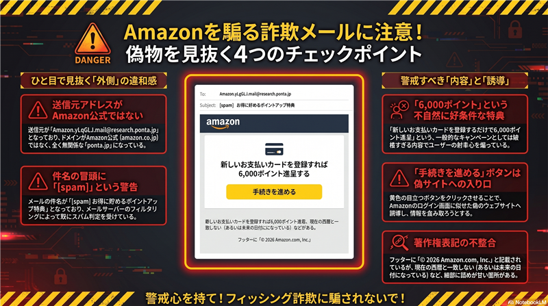 【実録】Amazonを騙るPonta特典?支離滅裂な詐欺メールを公開【閲覧注意】 Heartland-Lab セキュリティレポート:2026-04-29号